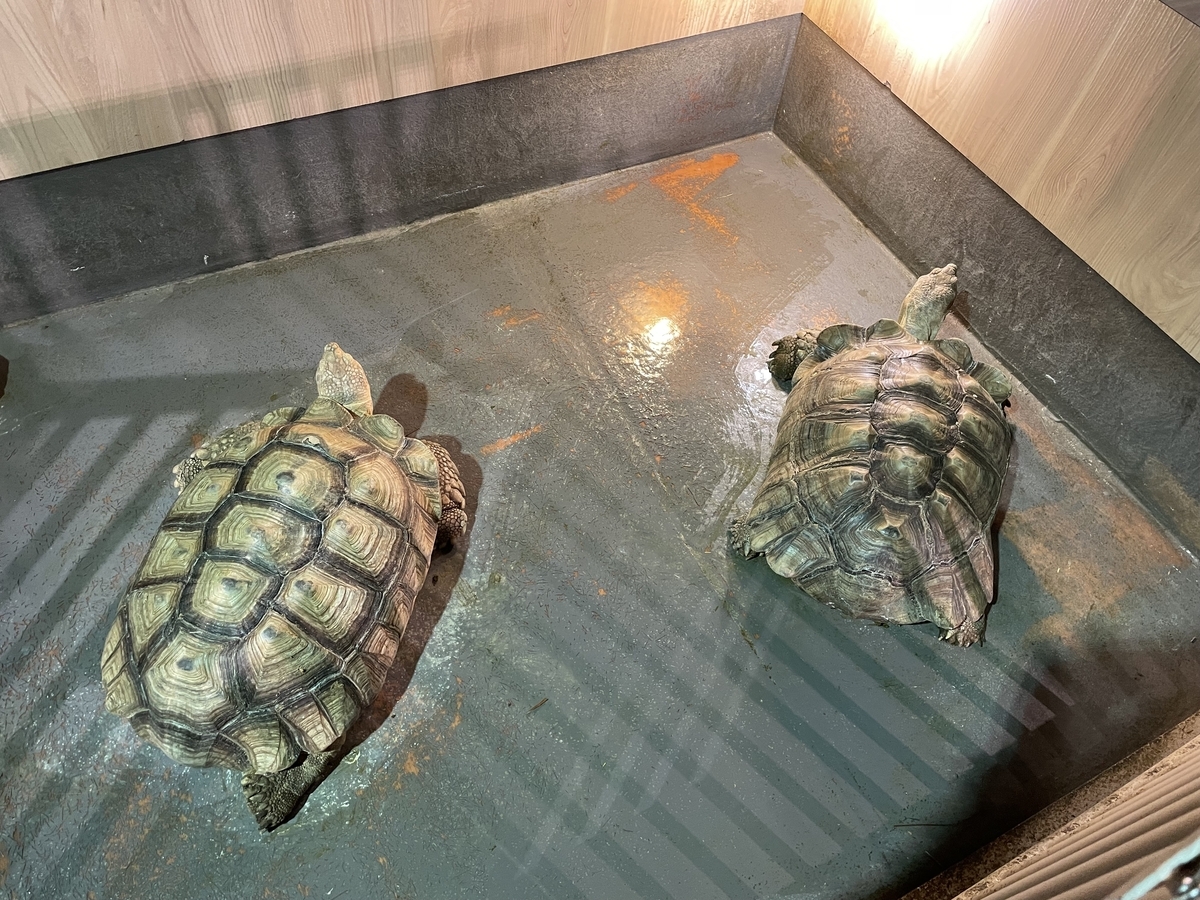 ナマケモノ・リクガメ等の陸に住む生き物を観察できます。リクガメは時間帯によっては餌やり体験も可能です。2歳の息子も「かめさん大きいね〜」と言いながら楽しんでおりました。ただ、リクガメはほぼ動いていませんでした…笑