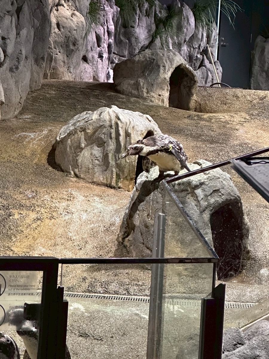 ペンギンの餌やり体験や、水中で泳ぐ様子を見ることができるエリアです。残念ながら休憩時間?だったようで、ペンギンの姿はほとんど確認できずでした。